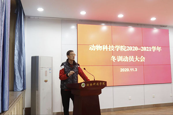 主持人张明侠老师宣布2020冬训动员大会正式开始。首先,由体育部负责人边晨启做出相关的冬训介绍和训练安排。随后,体育辅导员冯鑫老师就今年的特殊情况对体育部活动部署提出了宝贵建议并肯定了今年体育部的工作成果。他提出了“量力而行 科学运动”、“循序渐进 科学训练”等科学训练方式并强调了长跑中一定要端正态度,找寻其中的乐趣。学生代表李珂表示:参加冬训既能锻炼自己、增强体质,又能提升自己的时间管理能力。同学们纷纷表示他们对接下来的冬季训练充满了期待。最后,冯来顺老师对本学期上半学期的体育工作进行总结。他赞扬了动科学子甘于吃苦,运动拼搏的果敢精神并对学生干部表示充分肯定。他代表动科教师处对大家冬训的后勤保障做出保证并预祝大家在今年的校冬季越野赛中再创辉煌!