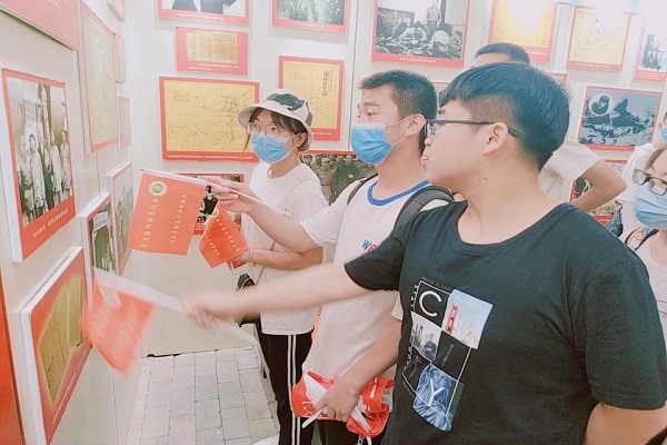 队员们学习讨论旧址内的资料
