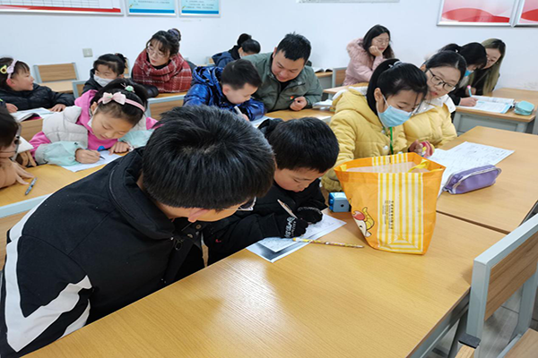 志愿者们先到达村委活动中心的乡村学堂,之后通过广播通知支教的相关事宜。陆陆续续有许多孩子来到乡村学堂,志愿者也对前来寻求帮助的孩子们进行一对一辅导。不到半个小时的时间,乡村学堂便坐的满满当当,有乖乖坐好听老师讲解的孩子们,也有不需要老师辅导自己安静写作业的孩子。学堂里充斥着孩子们和志愿者们讨论问题以及志愿者教孩子们画画的笑声。有一些写的快的孩子们提前完成了作业,由志愿者们带着孩子们在学堂外的空地展开活动。进行老鹰抓小鸡、彩虹过桥等小游戏,孩子们玩的不亦乐乎。
