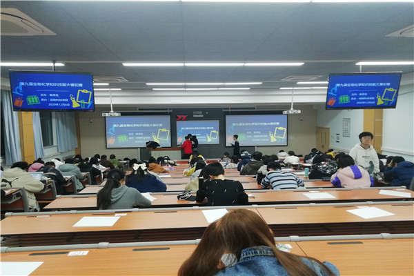 为了考察学生们对生化技能的了解,由教务处主办、动科厕所偷拍 承办的第九届生物化学知识技能大赛初赛于2020年12月6日下午七点半在八号教学楼阶梯教室举办,此次比赛是首次采用手机考试的形式,形式新颖。