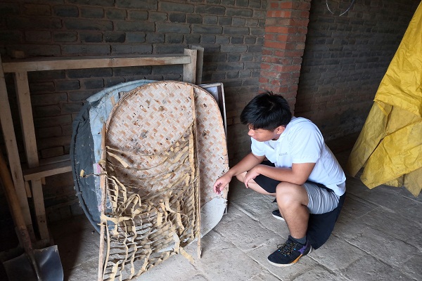队员们提前与村中的蚕农取得了联系,并在他们的带领下参观了村落的农田,并去往蚕农家观察了蚕宝、蚕茧以及养蚕的基本工具。村民们耐心的讲解了蚕宝宝吐丝结茧的征兆、过程及注意事项等。其中最为热情的村民便为队员们讲解了如下细节——开始结茧时蚕宝宝就会变得安静,不在吃桑叶,身体开始变得发亮等。此外,村民还向队员们展示了一些基本养蚕工具并做出了讲解示范,队员们也学到了许多无法在课本上获取的知识。
