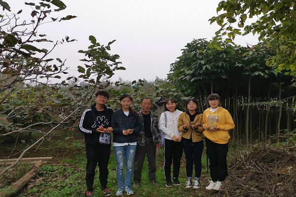 队员们对猕猴桃套袋很是好奇,对此曹高仓书记解释道:给猕猴桃套袋具有以下几个优点:首先,可以改善果实的外观;第二,可以减少尘埃及农药对果面的污染,防止果实病虫害的发生;第三,可以有效防止日灼;第四,能提高果实的商品性和经济效益;此外,还可以降低贮藏中软化果和腐败果的概率。队员们不仅了解了水果种植中套袋的相关知识,还亲身体验了为果子摘袋。队员高钰表示:“这次猕猴桃摘袋经历让我学到了很多果树种植的知识,这些都是我们在课堂上学不到的。”