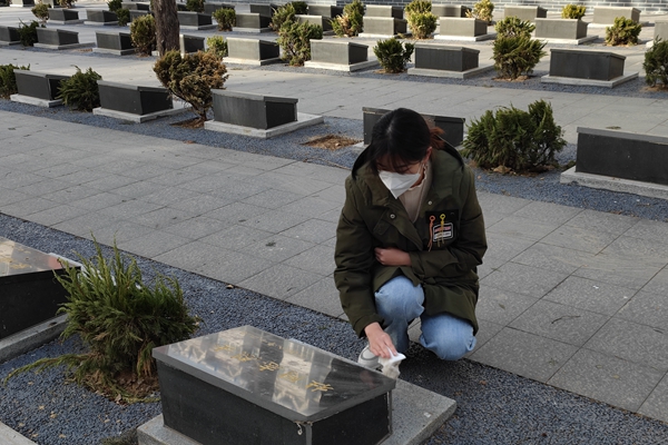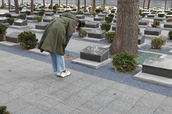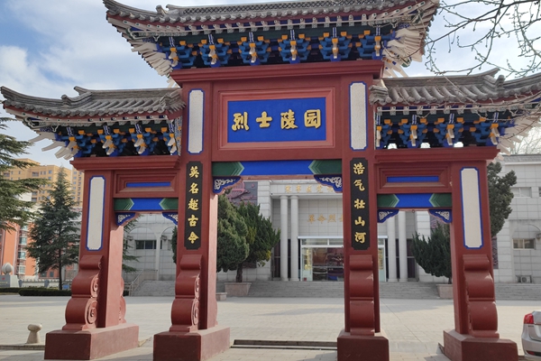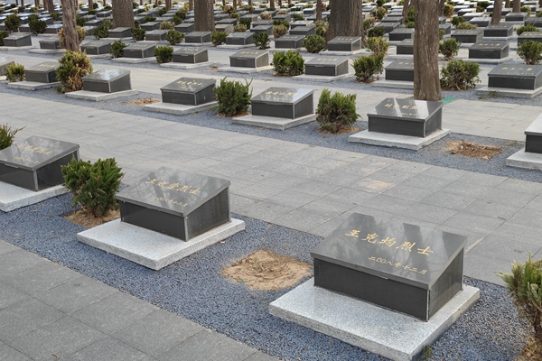 革命烈士纪念馆的后方是肃穆的烈士陵园。行行墓碑排列整齐,青灰色的石板更显庄重。墓地中,几棵数十年的老树傲然独立,其树干笔直挺拔,仿佛是烈士的脊梁,历经风雨而不倒、饱经沧桑而不折;树叶遮天蔽日,即使岁末隆冬也依旧无法掩盖其郁郁葱葱之势,烈士如松柏,严寒不凋敝。