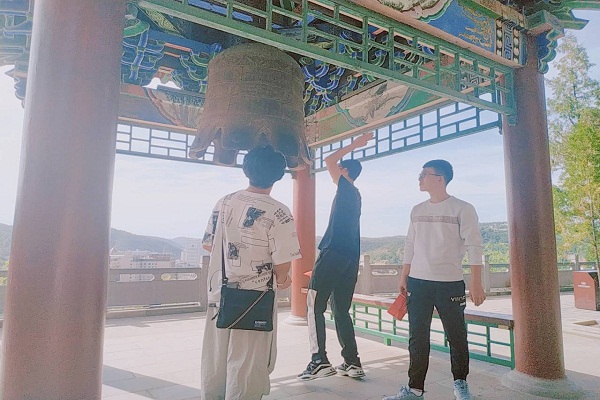 队员们从延河大桥出发,绕着山脚去参观宝塔山脚下的摩崖石刻,其中多副题字为抗战时期所留。随后队员们登至山腰处,参观了红军抗战时期驻扎留下的窑洞,其中挂着许多珍贵的照片,队员们都认真地进行观看和学习。登至山顶,山顶宝塔旁边挂着一口铜钟,有石碑介绍道:中共中央在延安时,曾以此铜钟报时、报警。参观完宝塔山顶后,队员们集体在宝塔前合影留念。而后沿着下山步道下山,结束对宝塔山的参观寻访。