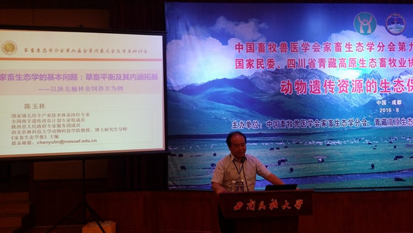 本次会议学术研讨的主题是“动物遗传资源的生态保护与可持续利用”。陈玉林教授应邀作了《家畜生态学的基本问题:草畜平衡及其内涵扩展——以陕北榆林舍饲养羊为例》专题报告,详细介绍了团队近几年围绕陕北白绒山羊开展的研究推广工作。