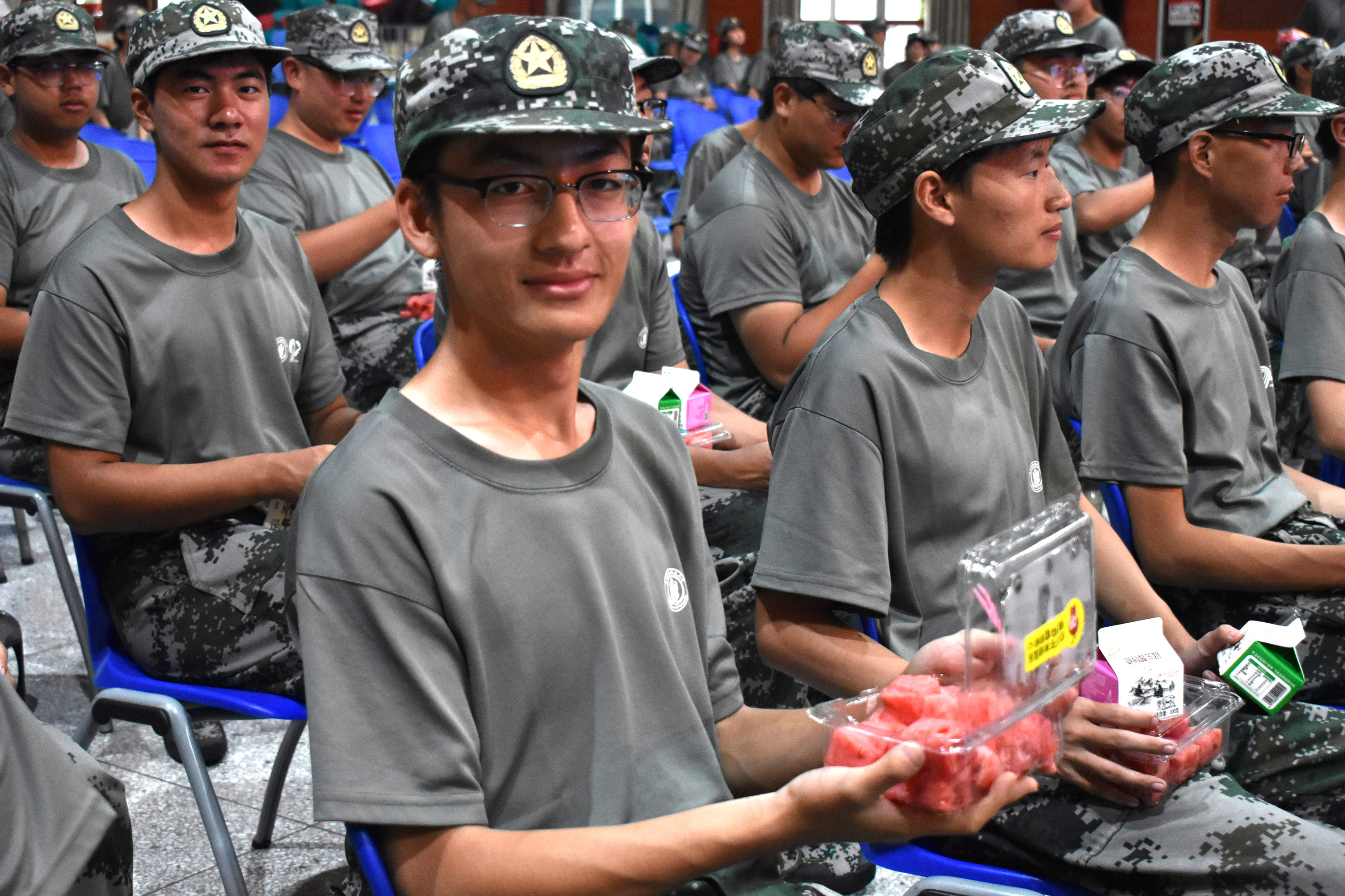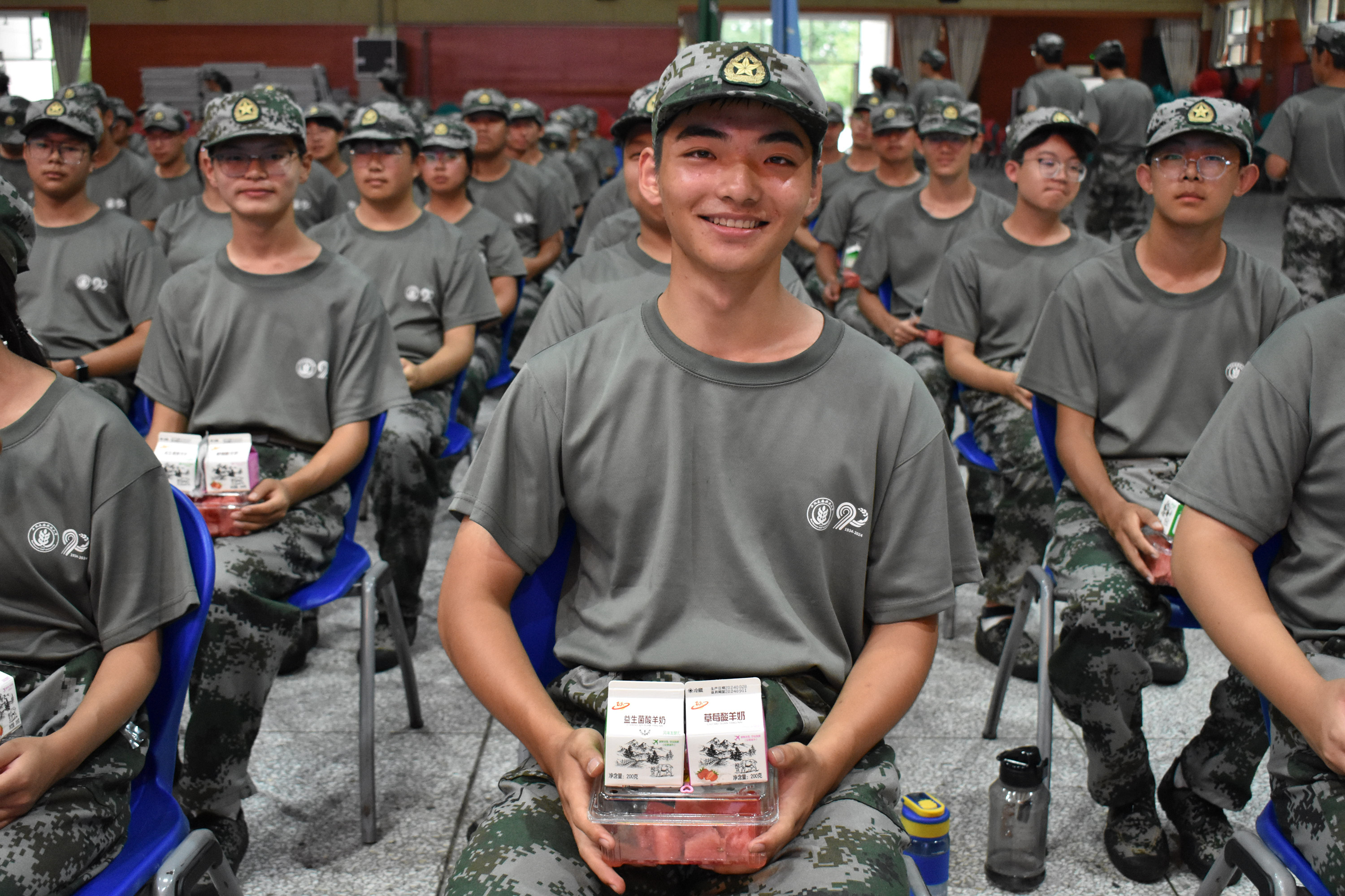 歌声嘹亮、动作整齐、气势恢宏,军训场上厕所偷拍 2024级本科生正在展开合唱比赛和军事技能比武的排练。为了抓好入学第一课,同时给动科学子加油打气,让同学们品味畜牧科技产品,体验动科行业魅力,9月2日下午,动科厕所偷拍 党委书记曹军会,宋宇轩研究员,任战军教授,党委副书记王力带着益生菌酸羊奶、麻辣兔丁和冰镇西瓜来到北绣山活动中心慰问全体承训教官和参训学生。