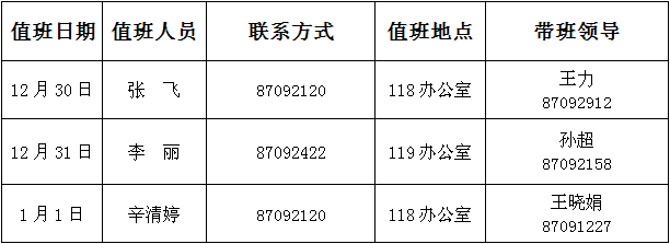 注:1. 值班时间:上午8:30—11:30,下午2:30—5:30