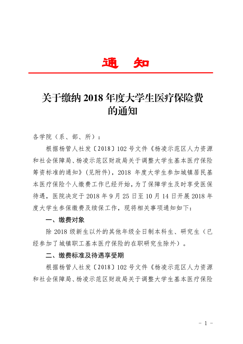 » 关于缴纳2018年度大学生医疗保险费的通知