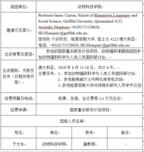 现将于太永副教授因公出国予以公示,公示期自2019年7月3日至2019年7月7日。如有举报意见,请以书面或口头形式向厕所偷拍 党政综合室反映,电话87092937。(公示内容见下表)