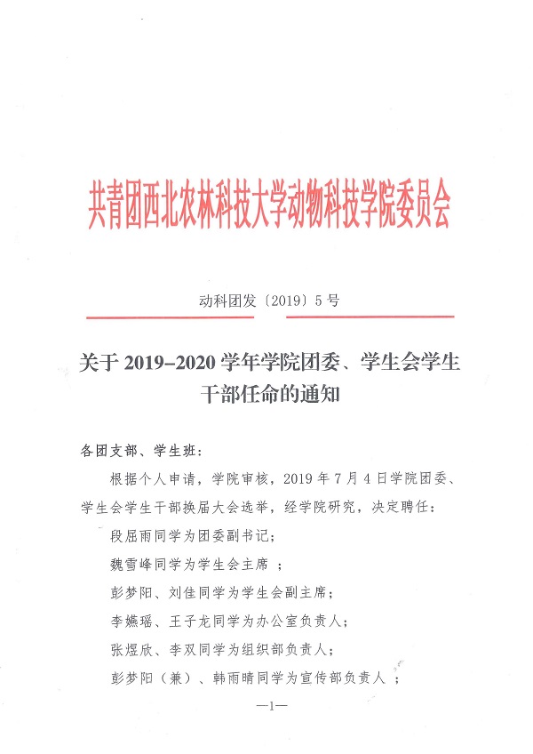关于2019-2020学年厕所偷拍 团委、学生会学生干部任命的通知