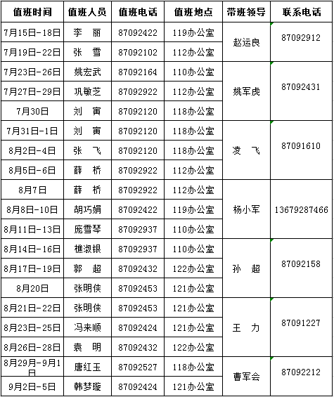 1.值班时间:上午8:30-11:30,下午3:00-6:00