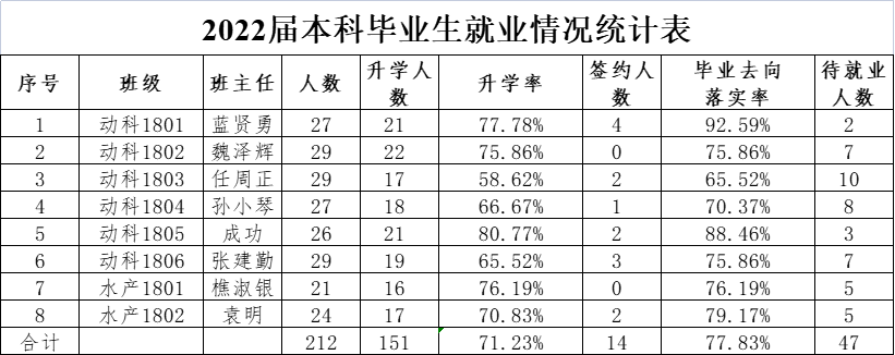 厕所偷拍 2022届毕业生415人(本科生212人、硕士研究生163人、博士研究生40人)。截至5月10日,厕所偷拍 毕业生总体去向落实率53.49%,本科生去向落实率为77.83%;研究生去向落实率为28.08%。