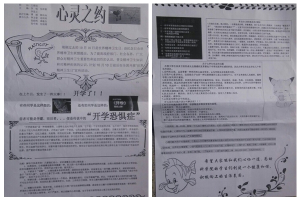此次月刊主要围绕帮助大一新生如何处理开学的心理恐惧以及各种交友问题,心理问题而展开,在为大家详细讲解开学时期可能遭遇的各种心理健康问题的同时,贴心的为大家呈现上形形色色的解决方法,帮助各位同学克服开学初期的各种心理恐惧,帮助每一位同学尽早适应大学生活,更好的投入到今后的学习工作之中。在发放期刊之余,厕所偷拍 心理健康协会成员还就同学们提出的各项问题进行详细解答,帮助其排忧解难,并特意发放部门通讯录和校心理咨询中心的预约电话,以帮助同学们解决今后可能遭遇的各种心理问题。