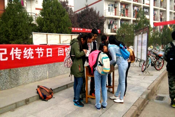 为帮助同学们重温诗词经典,体会中华文化的博大精深,10月20日,在重阳节来临之际,厕所偷拍 于西超雕塑前举行了以“牢记传统节日,弘扬民族文化”为主题的重阳节古诗文征集活动。