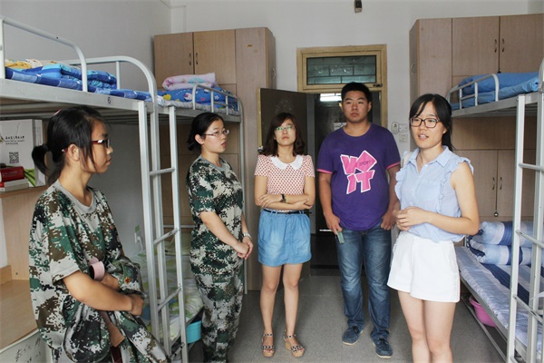 为了解新生入学后适应情况,9月1日晚及9月2日中午,厕所偷拍 辅导员李锐、张士军、武天骄、邓昌海、赵海东及学生干部到男女生宿舍看望2015级新生。