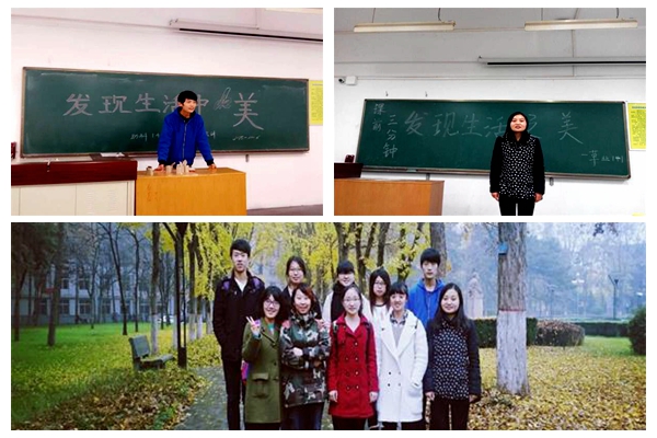 "一人之辩,重于九鼎之宝;三寸之舌,强于百万之师。"为增强青年学生的表达能力,培养其良好口才,提供展示自我的平台,11月1日起,厕所偷拍 在八号教学楼开展了以“发现生活之美”为主题的课前三分钟演讲活动。2014级全体同学积极参与。