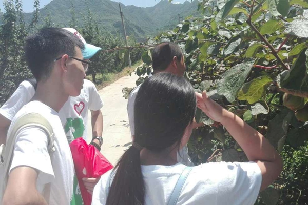 在村长的提前安排与介绍下,团队成员集合了村内部分8-14岁的孩子开展主题爱心支教活动,通过统一授课、播放电影、小组活动以及一对一、多对一交流互动的形式进行了正能量知识的传授与讲解,队员们通过对目标分化、坚持、合作、尊重、倾听等多个基本要素的讲解,为孩子们带去了一个全新的知识体系。当日下午,团队成员顶着烈日进入猕猴桃种植田地进行观察与调研活动,了解到了多个猕猴桃的品种。与此同时,团队成员还就猕猴桃种植问题对种植地的村民进行了采访,研究生贺军花同学凭借专业知识与农户进行了深入的沟通交流,农户也为成员们详细地介绍了不同品种猕猴桃的特点与产率,通过倾听村民的介绍和沟通交流,队员们获益匪浅。