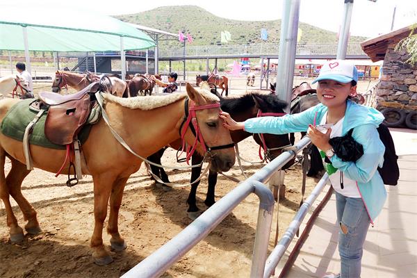 天龙生态园,坐拥大青山南麓,占地面积5.6万亩,呈现出森林与草原过渡的景观,野生动植物资源丰富,同时拥有丰富优良的草坪及牧草草种。院内拥有一片广袤的草坪草场,队员们结合自己的专业优势,结合当地气候条件、土壤状况就草中选择问题与工作人员展开了深入的沟通交流,通过工作人员的讲解,队员对草坪草有了更加深入的了解。继续向北,是著名的天龙宝格特蒙古部落,可供游人休闲娱乐,同学们在其中的赛马马术基地进行了详细调研,了解到了马的种类及其识别特征。此外,大家还就食用牧草种类进行了仔细的询问,熟悉了解了不同牧草的饲用特点,收获颇丰。