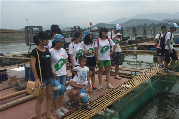 流水镇是位于陕西省安康市的一个下辖村,这里山乡野趣与平湖风光兼备,湖光山色,壮丽秀美,人文景点密布,具有极高的调研价值。经过一个多小时的车程,队员们抵达古镇,对此地的鱼类养殖进行了参观和调查。通过调查,队员们得知,流水镇周边主要采取网箱养殖的方式,以此节省开挖鱼池需用的土地、劳力,且能充分利用水体和生物资源。