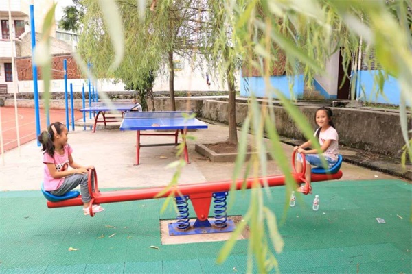 行走在蓝天白云下,穿过一座座青山,队员们来到了高酿小学。这所小学被美丽的山水所环绕,环境清幽而美丽,踏入高酿小学,并听到了孩子们欢快的笑声,只见他们在开心的做游戏,打篮球、荡秋千、滑滑梯……仿佛他们的心中没有任何的烦恼。