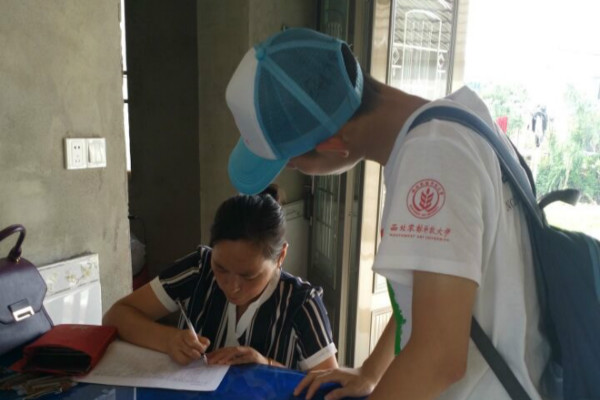 活动前期,队员们认真讨论,制定活动计划,最终确定以两人一组、每人一卷的形式,分头展开行动。同学们走街串巷,将精心制作的问卷发放到乡民们手中,同时与乡民们深入交流,了解群众内心对国家经济政策的看法。乡民们热情淳朴,虽然劳作忙碌或有些识字困难,但大多都积极友好地配合队员们。一些乡民更是对同学们给予了高度评价,并感谢同学们认真负责的帮助。入户填卷结束后,小组成员进行了汇总整理与完善,进一步深入了解了当地农户经济状况及和政府扶贫工作实况。