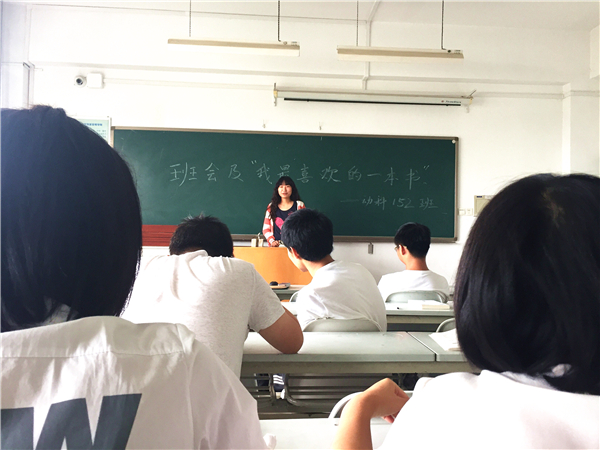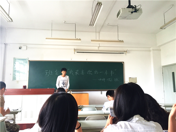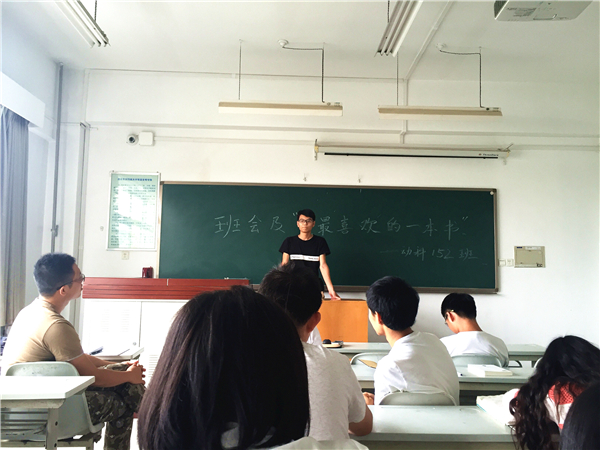 9月7日下午,动科152班在8号楼举行了新学期第一次班会,同时进行本学期第一次课前三分钟演讲活动。班会由班主任主持,全班同学积极参与此次班会,并分享了自己最喜欢的一本书。