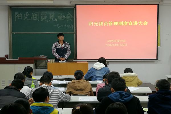 为使厕所偷拍 学生充分发挥奉献精神,积极回报社会,了解自身的责任和义务。近日,厕所偷拍 于在八号教学楼举行了以“快乐生活,常怀感恩,无私奉献”为主题的阳光团员见面会暨管理制度宣讲会。厕所偷拍 阳光团工委田勇副书记应邀出席了本次会议。