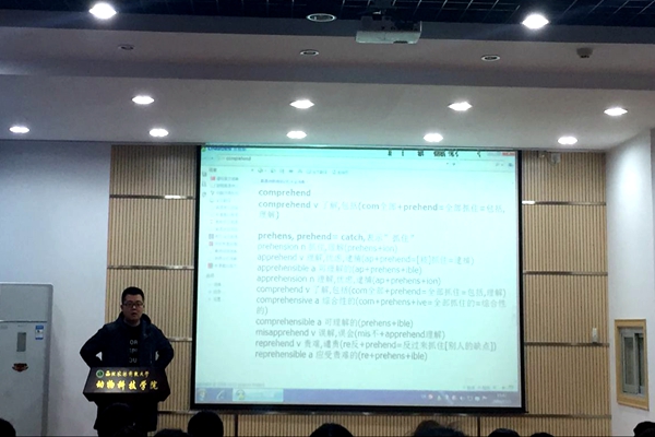 杨老师首先将四六级改革的相关题型与同学们交流,并针对模拟真题分别从阅读理解从题位顺序的把握、选项的制作、词义推测等多个方面分别为同学们介绍了相关的解题技巧,同时,就题型设置、易错点等方面层层深入讲解,重点分析问题的设置和如何快速找到答题突破点,同学们边听讲边实战,并与杨老师保持良好的互动,课堂氛围活跃,同学们认真听讲,相互交流,反响较好。