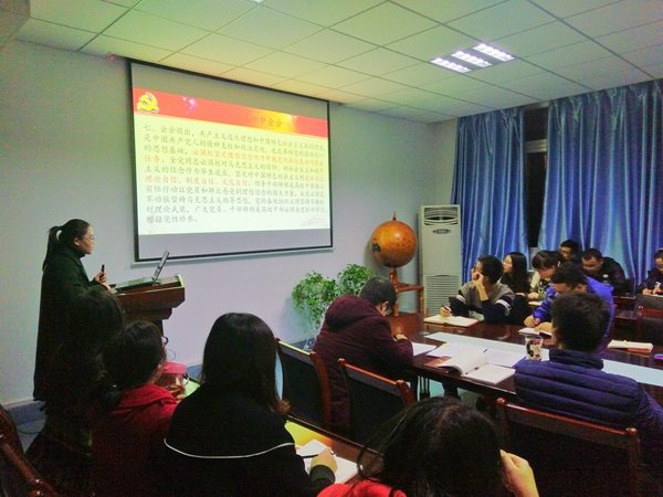 党支部组织委员刘兆军同志带领大家就党章第四十三到四十五条进行深入的学习交流,支部其他成员积极地展开讨论,理解了党的纪律检查机关的设置、任务、及上下级党委纪委的关系。陈永刚等五位同志就十八届六中全会公报逐条讲解,分享了学习贯彻六中全会公报的收获体会和个人思考。马衍旋等两位同志带领大家回顾了红军长征的艰苦过程,以及长征精神在新形势下的意义,与会党员结合切身实际和所见所闻对未来如何发挥长征精神发表各自的看法。