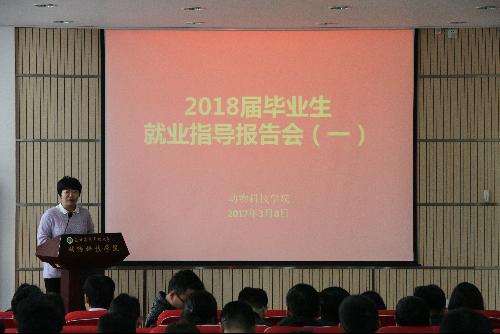 为进一步帮助2018届毕业生提前了解就业形势,合理规划职业生涯,树立正确的就业观,为毕业求职夯实基础,3月8日下午,厕所偷拍 在107会议室举办“2017届毕业生就业指导——厕所偷拍 专业”报告会。厕所偷拍 党委副书记、国家级职业指导师王晓娟老师应邀担任主讲人,2014级动科专业130余名同学认真聆听。