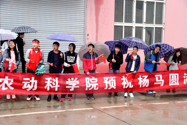 在比赛当日,不仅有60名志愿者来到比赛现场,动科厕所偷拍 学生会、各班级也有众多同学积极参与到此次马拉松比赛中,众多同学在赛道两侧挥舞着国旗,头绑红色印有西农字样的条带,贴着印有校徽的贴纸,为参赛者鼓劲加油。尽管雨滴打湿了志愿者们和同学们的衣服,却没有浇灭他们服务于参赛者的热情。