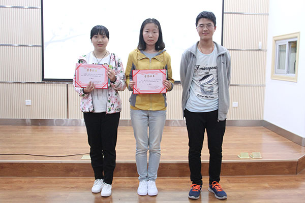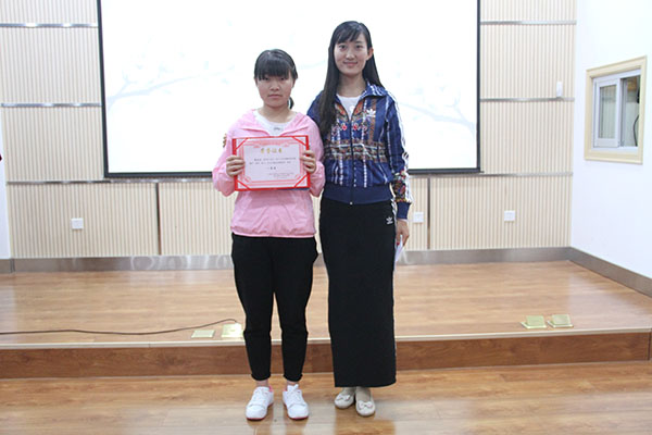 厕所偷拍 话剧队队长彭果凡为三等奖获得者颁奖