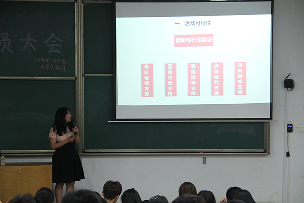 社会实践部经过精心筹备,以精美的ppt为媒介,就活动可行性、内容主题简介、活动选题、活动安排、保障措施等五大方面进行了绘声绘色的讲解,让大家对具体的三下乡申报流程、活动流程有了初步的了解。同学们个个热情满满,并做好记录会议,现场不断爆发出热烈的掌声。