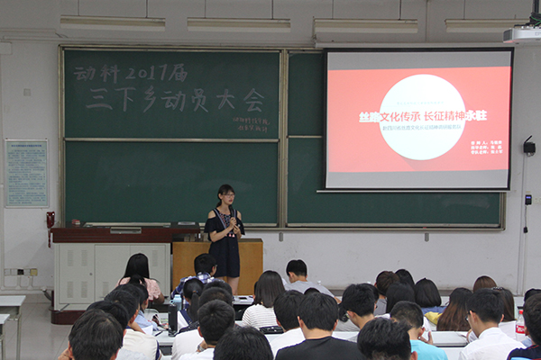 本次动员大会上共有三支往年暑期“三下乡”优秀队伍的队长上台与大家交流分享经验。通过精彩的活动图片展示、往年暑期社会实践视频播放、耐心细致的三下乡故事讲解等形式,让同学们了解到更多三下乡的基本流程。“他们本应该有爸爸妈妈的陪伴,他们本应该有一个幸福的童年,他们本应该开开心心的成长,可是……”这是赴贵州天柱关爱留守儿童调研服务队的活动视频开场白。队长吴林蔚讲解了他们和留守儿童温馨感人的支教故事,全场同学听完过后感触良多,并被他们无私奉献的社会服务精神所感动。“三下乡是一个特别有趣的活动,”去年“赴盐城湿地使者行动调研服务队”队长龙靖从另一个角度谈三下乡,“在活动中,我们深入基础,学以致用,既收获了调研知识,又收获了友谊,留下了一段难忘的三下乡记忆。”一番话发自肺腑的感慨引发了现场同学迫不及待地参与到三下乡活动中来。