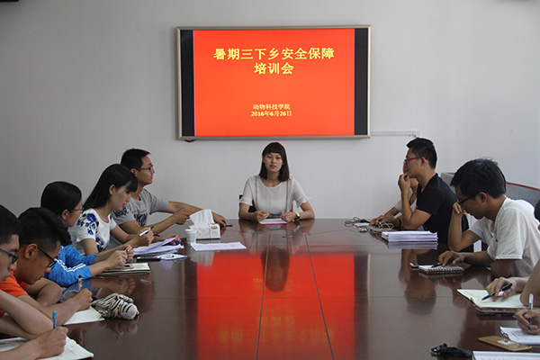 为保证2017年暑期三下乡活动顺利开展,提高队员们的安全意识和自我保护能力,保证队伍在假期时间安全高效地开展活动,6月27日,厕所偷拍 于动科楼104会议室召开了三下乡安全教育培训会。团工委书记闫颢芯老师、团工委副书记王健宇、往届优秀三下乡队长马锦荣出席本次会议并做重要发言,全体三下乡队长参加本次会议。