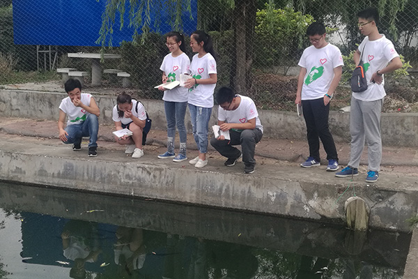 经过前一天的休整,研究生谢醒达开始带领队员们参观水产示范站,在参观的过程中还为队员们介绍了水产示范站的布局,带着队员们走过水产站的22方鱼塘。据谢醒达介绍,19号池培育的是示范站的主要推广鱼类-匙吻鲟,在19号池上方覆盖有网,是防止鸟类偷吃匙吻鲟。为了让队员们看到匙吻鲟的特殊之处,谢醒达带领同学们给匙吻鲟喂饲料与匙吻鲟近距离接触。通过向驻守研究生提问和网上查阅资料,队员们更体会到了培育匙吻鲟鱼苗的不易。水产专业的王文韬同学表示希望以后能加入驻站教授吉红老师的队伍,从事鱼类营养学研究,为匙吻鲟等鱼类的培育贡献力量。