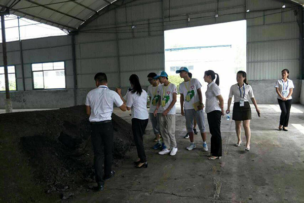 工作人员带领队员们参观猪粪发酵堆