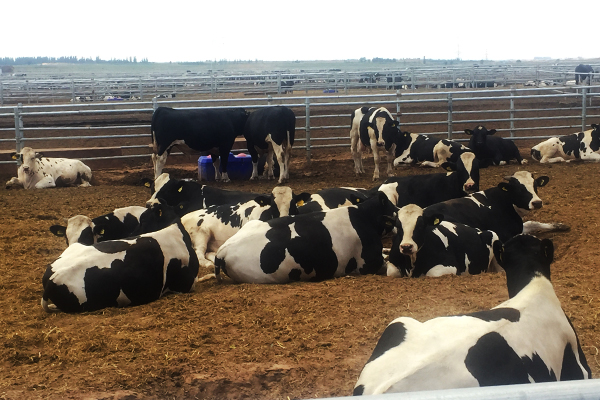 散养区没有如同棚户区一样严格的管理体系,无论是熟悉的荷斯坦牛、日本和牛,亦或是世界著名、价格昂贵的西门塔尔牛,各个品种的牛都散养在同一片大养殖区内。在规模养殖场,牛都按照年龄,品种等严格的区分成一个又一个小小养殖区。而在这个露天牧场,不同品种的牛都悠闲地散养在一起,其中公牛居多。工作人员告诉队员们,这些牛从小就被养在一起,因此也不存在不同种牛之间的争斗了。