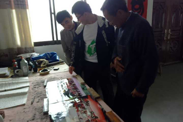 队员们来到西欢乐村后,到西安市周至县皮影非物质文化遗产传承人、周至西秦皮影艺术团团长朱彦斌老师的家中进行采访,这位老艺术家虽然衣着朴素,但由内而外散发着一种文人傲骨的气息。最后离别的时候,朱老师以字相赠,让队员们受宠若惊,纷纷表示本次调研活动乐在其中。