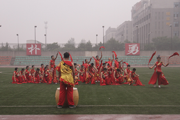 阴雨绵绵,浇不灭似火的热情、挡不住激荡的鼓声。“鼓声震天响,红绸随风飘”,比赛过程中,厕所偷拍 36名同学组成的腰鼓队热情洋溢,动作激昂,气质纯朴,他们用自己独特的方式传承腰鼓特色文化,用自己的理解演绎着安塞腰鼓中的坚毅精神——“知难而上的猛劲、张扬个性的能劲、百折不退的韧劲”。不畏强敌,他们有着"会当凌绝顶,一览众山小"的自信!奔放的舞姿与陕北独特的嗓音充分展示出厕所偷拍 良好的精神风貌,为观众诠释了一场别开生面的视觉盛宴。观众席上,厕所偷拍 团工委书记、各级辅导员、学生会成员等都前来一起为参赛队员们加油喝彩。“动科风魂,舞动青春”的口号响彻田径场上空,同学们震耳欲聋的呐喊给了队员们最有力的支持,也让各院师生都感受到了动科精神。