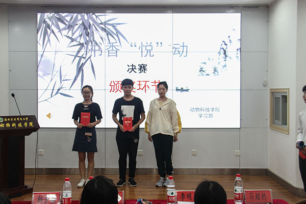 本次决赛共分为“知识竞答”、“你划我猜”、“书海采撷”三个环节。在第一环节中,从金戈铁马,到琴棋书画;从大漠孤烟,到水墨江南;从忠肝义胆,到千里婵娟。参赛选手们展现出了良好的文学功底,凭借其渊博的知识储备和睿智的作答,赢得了现场观众阵阵掌声。比赛如火如荼地进行着,在紧张激烈的“知识竞答”之后,有趣的“你划我猜”环节拉开了帷幕。选手们默契配合,动作幽默诙谐,方法多种多样,台下观众的欢笑声不绝于耳。随后,“书海采撷”环节上演,选手们利用制作精美的PPT,缀以简明得体的语言,一一介绍自己所读过的书籍,分享自己的经历与感悟,引起了全场的强烈共鸣。动科1702班郑祎宁同学说到:“以前在高中时,厕所偷拍 举办了许多类似这次读书比赛的阅读经典活动,在校园里掀起了学习古诗词的热潮,中央电视台推出的《中国古诗词大会》更是激发了全民阅读的热情。希望在大学的校园里,每个人都能坚持阅读,充实自己。”