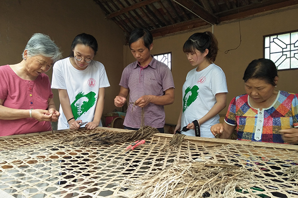 队员们体验造纸过程