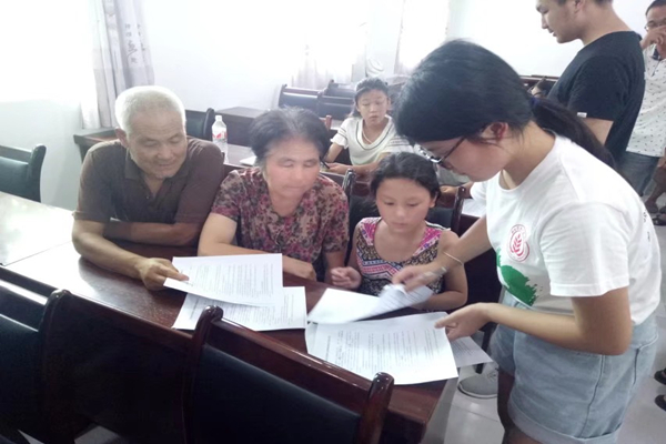 报名过程中孩子们对知识渴望的态度令队员们无比动容,初定的班级四十个名额迅速被报满。在登记完报名学生的信息后,队员们将家长们聚集起来,耐心、详细地为他们介绍了注意事项,并签订了《安全协议书》。