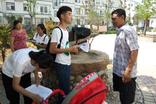 接下来,队员们来到了当地的汝南社区。这是一个新建的居民社区,混居了远方移民和当地居民。队员们来到村民纳凉聊天的场所,和他们进行了简单交流。同学们了解到大家都生活较以往有了改善,特别是住房方面,基本上都住进了政府新建的楼房,生活水平也有了一定的提高。但是一些居民也提出了他们的一些烦恼。村民金隧平就说到:“国家的政策提出的好啊,但就是从上到下落实的不太利落,一些本应享受到的福利却没有享受到。还有这里农业水利设施基本没有,只有靠天吃饭啊。”一位不愿意透露名字的高姓村民也反映了类似的情况,他还向队员抱怨当地的水费和电费太贵,有些负担不起。队员们又陆续采访了数位村民,发现大家的问题大同小异。