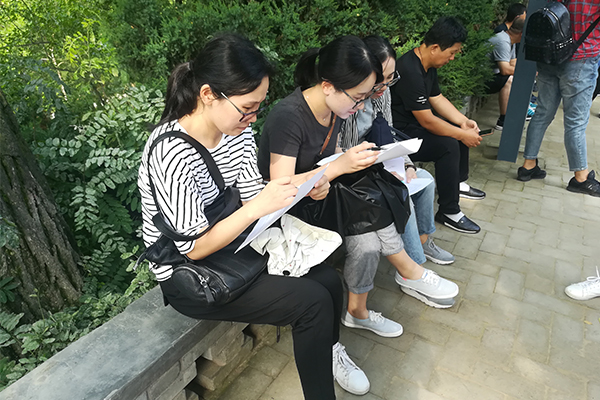枣园游客积极配合调研队问卷调查