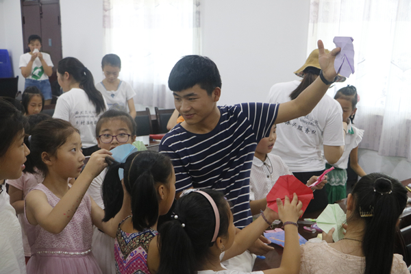 7月18日,厕所偷拍 赴杨凌新集村支教服务队如往日一样,早早到达支教地点,为今日课程做准备。活动中,队员们给孩子们播放音乐剧开阔孩子们的视野,培养其艺术鉴赏能力,并在手工课上教孩子们折风车信封,锻炼他们的思维和动手能力。