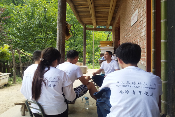 秦岭巉巉列万峰,晚岚浑欲滴晴空。这是诗人,文同在《北楼晚晴望秦岭》中对秦岭钟秀,巍峨的形容。西农学子“农情蜜意”团队又一次深入秦岭,驶离城市,翻越大山,在这个山高水长、钟灵毓秀的地方,继续书写着他们的缘分。陕西省周至县板房子镇红旗村——一个少有人知的地方。这里远离喧嚣,没有污染,山青水秀,流淌着最质朴的血液。路边,山上,农户家,都可以见到许多蜂箱,这就是秦岭最纯正的百花蜜的来源。由于响应国家脱贫致富的号召,村民纷纷收到了周至县扶贫办发来的5箱蜂和其他物资,依着秦岭深山开始了他们的脱贫攻坚战。