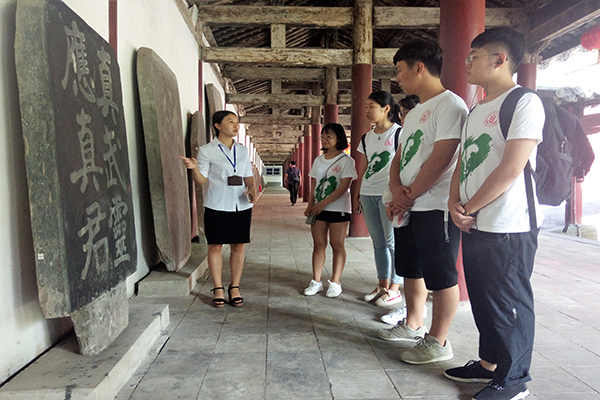 依着涪江,沿着山路,8月12日,经过将近四个小时的颠簸车程,赴平武“自然卫士在行动”调研服务队终于到达四川省绵阳市平武县。平武县素有天下熊猫第一县之称,四周群山环绕,景色优美,令人心旷神怡。为感受当地的风土人情,体验平武县悠久的历史文化,队员们首先来到了平武地方古代历史、文化、宗教和艺术遗迹的典型代表地——报恩寺博物馆。