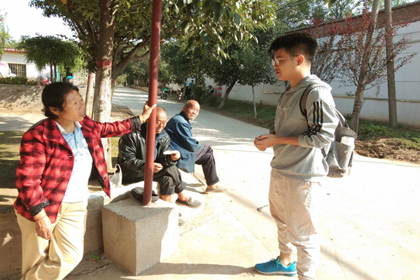 由于天气较好,许多老人都选择在户外晒太阳,这也极大方便了他们的慰问活动。老人都十分健谈,精神气都非常好。村助在拉家常的同时,也了解了他们对于村助活动的看法。两位村助也通过本次机会,向老人们详细讲解了一年来村助举办的各种活动,包括慰问孤寡老人、组织义务支教等。由于时间仓促,两位村助并没有准备礼物,但是祝福的心意不会少,这些爷爷奶奶脸上的笑脸就是对两位村助工作最好的证明。在拜访的老人中,有一位李奶奶因支教活动与两位村助相熟,李奶奶对于两位村助的爱心关怀赞不绝口,对两位村助一年来的付出也表示了感谢。