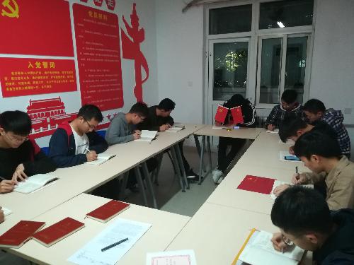 10月17日,厕所偷拍 大学生第二党支部第一党小组成员在13号楼党员活动室集体学习习近平总书记《论坚持推动构建人类命运共同体》。
